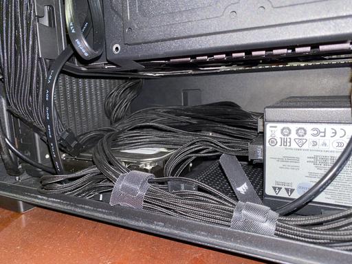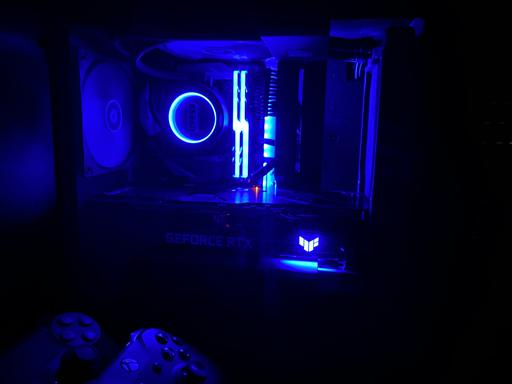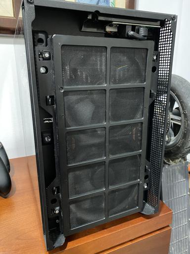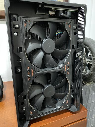 The H210 was modified to fit the ASUS TUF RTX 3080, the PSU shroud and the NZXT strip were cut where the GPU fans are, the bottom part of the NZXT strip also acts as a stand for the GPU. The fans support is using stand-offs to gain space inside the case (14mm offset with the stand-offs). The I/O on the top of the case had the USB ports rotated 180º so the 280mm radiator could move as much as possible to the front of the case.